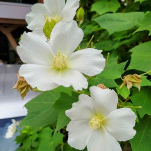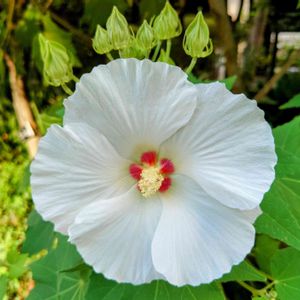 先日通勤途中に見つけた白い芙蓉が綺麗でした。