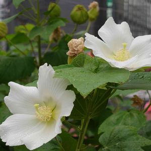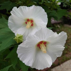 ふたつ重なって咲く白いフヨウが綺麗でした。