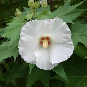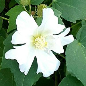 街路樹の下で咲いてました♡ 大好きな 真っ白のお花♡♡ 葉っぱが大きいので フヨウ でしょうか⁉ 散歩でシロトピア公園まで歩いて来ました🤭 今日は出掛ける予定が無いので テクテク🚶♀8,488歩です