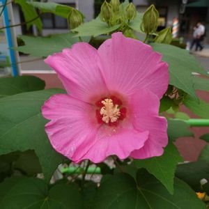 ピンク色の芙蓉の花が綺麗でした。