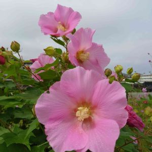 沢山咲いたピンク色の芙蓉が綺麗でした。