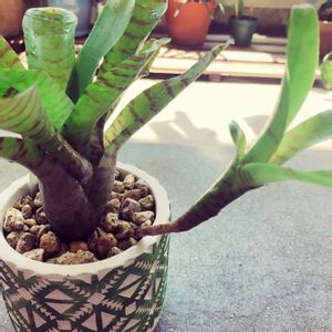 冬の間、外で過ごしたネオレゲリアの色がすごい変化してしまって縞模様もすごい出てなんか違う品種みたいに🏝 これって単純な日焼けなのかな🤔 左が昨年秋、右が今日。たくましい🌵