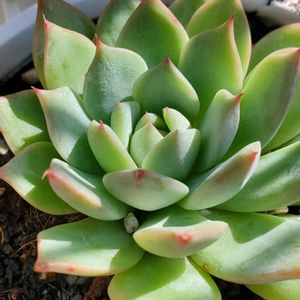 【エケベリア属 ティッピー】 Echeveria 'Tippy' 別名 テイピ チピー・チッピー・チビー 韓国名 티피 ネームタグは【ティッピー】🏷 昨年のちょうど今頃、 タニ友さんからいただいた ティッピーがモリモリに増えました タミニクチャン、アリガトウ( ˘ ³˘)♥ 🇺🇸作出者 Dick Write(ディック・ライト)氏 🇺🇸原産地 カリフォルニア州 🇺🇸1968年 ICNによると👇 「E.agavoides x E. derenbergiiであると言っているが、これはかなり疑わしい 〜中略〜 「Tippy」という名前は、 E.chihuahuaensis × E.colorata 「Lindsayana」のハイブリッドにも誤って使用されている さらなる混乱を避けるために、これは 「Beatrice」に名前が変更された」 アガボイデス×静夜の説と、 チワワエンシス×コロラータ の交配の説があるようですね 🌱Echeveria agavoides×Echeveria derenbergii 🌱Echeveria chihuahuaensis×Echeveria colorata ☆Source☆ 【International Crassulaceae Network】 https://www.crassulaceae.ch/de/artikel?akID=48&aaID=3&aiID=T&aID=164