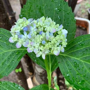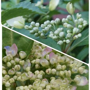 今年の紫陽花。 調べたら品種は 三河千鳥とのこと🏵 土壌は酸性のようなので、挿し木で別に牡蠣の貝殻を入れてアルカリになるか観察してます。青色以外になるかな。