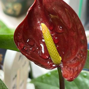 濃いチョコレート色がシックなアンスリウム。 つやつやな葉も素敵(•ө•)♡ レースのカーテン越しの日光が当たる室内で管理して下さい。 黄色くなった苞は早目にカット✂ 贈答用としてもオススメ♥