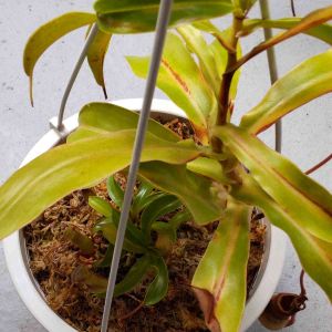 ネペンテス グラリシス スポート🌱 夏以来、全く捕虫袋がつかなくなりましたが、寒いのかな?? 日の当たる窓辺は朝方冷えるので、空気穴を開けたジップロックをかぶせてみました😅