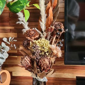 こんにちは😊 今日は頭ガンガン😖💥です。 と言うことで、おとなしくお家で、先週購入したシダーローズさんを使って、ドライフラワーを秋バージョンにメンテナンスしました(*´∀`*)💗 ④は棒につけて乾燥中の📷です🤭 これにパンパスさん🌾飾るだけでも可愛いかもぉ~🤗♪ ちょっと、お花モリモリ過ぎましたかね🙄😅😂?