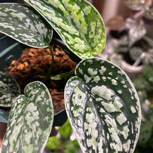 ホヤ クローニアナシルバーᜊﬞﬞ ペカ✨ペカ✨光って綺麗な子です(⁎⁍̴̛ᴗ⁍̴̛⁎) 小さい葉の可愛いこちゃん達はこの辺にして大葉のワイルドホヤに手を出して行きたいのだけど... お高いですね、ワイルドな子たち… 季節も冬だし、貯金して来春ホヤ爆買いしたいなぁって......(ㅇㅂㅇ)ハッ‼...夢か(°͈̅ ᢐ °͈̅)ジュル…