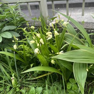 こんばんは☔️ いつも行く山野草コーナー 斑入り黄花小白笈(きばなしょうはくきゅう)という難しい名前タグが付いていました😅 斑入り黄花シランのことのようです