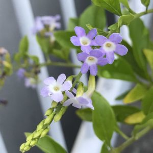 ①②③散歩中に見つけたデュランタレペンス、爽やかです ④⑤自宅のデュランタ宝塚 長年咲いていたのが枯れてしまい たまたま見つけたので植えました まだ小さいです 別名:ハリマツリ、タイワンレンギョウ