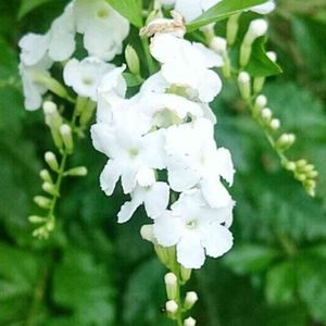 本日3枚目も今日のお花🌿🌼🌿 白いデュランタです🌿🌼🌿 紫も素敵ですが清楚な白も 良いですよね🌿🌼🌿 いつもの散歩道で🌄