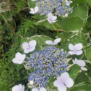 爽やかで涼しげなガクアジサイ✨ 斑入りの葉っぱも素敵です🌿