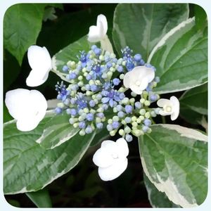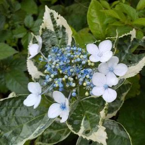 白花ガクアジサイ 斑入り葉には 和風美人の風情