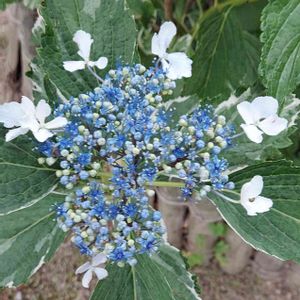 おはよぅございます☁☁☁ 22年経つかなぁ~挿し木で ここまで。 毎年咲いてくれる斑入りガクアジサイ💙 やっぱりお披露目したくて・・・。