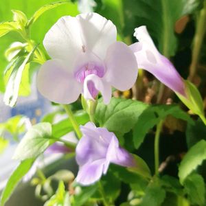 今日も風が冷たい一日でした❄️ 室内越冬中のスーパートレニアカタリーナ、アイスリバー🌿 夏は涼しげだった花色が、冬はふんわり暖かく見える気が💠