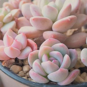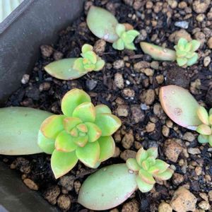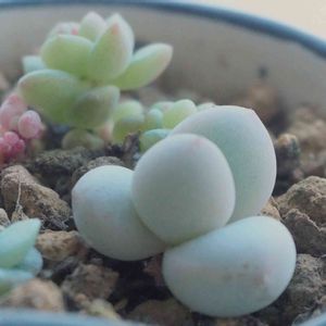 「ムッチリぷくぷくの日」という素敵なタグを見つけたので、湯園チーズとピンク美人で参加させてください˚✩* 植え付けてから1ヶ月以上経つのですが、ちゃんと根張りしているか不安な子達です(´▽`) クリームティーは最近粉吹きがすごくて、真っ白美人さんになってきました♬*°
