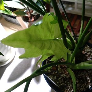 こんばんは🍺🌃 朝から津波の危機!? ビックリしました😵 クワズイモ ヒョロヒョロですが、定期的に新葉をだしてくれる💡