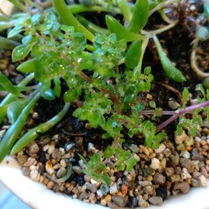 おばんです🌃🍺 ルビーネックレスの鉢から謎葉っぱが生えてきて、だいぶ大きくなりました😲 君はだぁれ!?😂