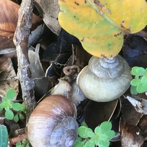 緑がなくてごめんなさい(-ω-;) ⚠️嫌いな方、ごめんなさい! 沖縄の厄介な外来種…珍しくても、触らないでくださいね!寄生虫がいて、危険です‼︎ 雨上がりでワサワサお食事タイム…🐌 アフリカマイマイ。どこにでも居ます。 大きくて普通のカタツムリとはあきらかに違う迫力があります。 私、案外虫や爬虫類何でも大丈夫派ですが…コレは嫌い。