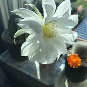 おはようございます😊 朝から窓際暑い🥵です。 朝起きたらお花萎んでる?と思っていたら… まだ咲いてくれてました💕 お花が重そう(⌒-⌒; )💦
