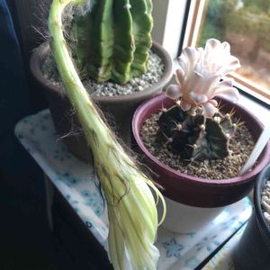 おはようございます😃 春にカット苗で頂いたニョロニョロ🌵さん😊 適当に寄せ植えしたので…バラバラ寄せ植えです(⌒-⌒; )💧 新芽🌱も沢山付いてきました😆