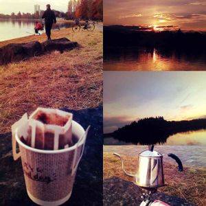 朝の散歩道。 何時も出会う、鯉を釣って🎣いらっしゃる方が、🏪でcoffeeを買って、自宅からポット等を、持参して下さリ、 モカを淹れて下さいました。此の景色を見ながら、素敵なcoffee timeでした。