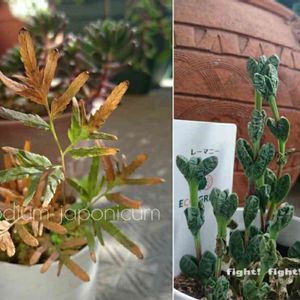 シダの日🌿 🏷️シダ愛好会🌿 ゆるっと参加します(( ̄_|ハンブンダケ💧 暖冬で…ずっと起きてたカニクサさん🌿 やっと 暫しの眠りにつこうとしています(。-ω-)zzz お隣は…永遠の眠りにつこうとしているレーマニーさん(*゜▽゜) 昨日 狩っては みたものの… 葉も 茎までも シワッシワ( ω-、) 緑ではあるが…足元から枯れてきてて💧 ちょっと厳しいかも〰️ 頑張れ レーマニー(っ`・ω・´)っ