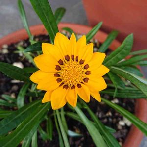 明るいオレンジ色の太陽☀️の様な花ガザニア🌟 折り紙の様にくしゃくしゃな表情だったり元気もらえる面白いお花😊🎶