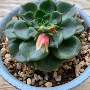 エケベリア セブンスターのお花✨🌵✨ 花茎は短かく、桃太郎や七福神等とは違った雰囲気のお花です😄💕