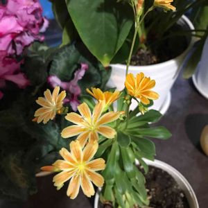 数年花が咲かなかったレウィシア 今年咲いてくれました♪ でも甘やかしすぎで茎が伸びすぎてしまい変…どうしよう^ ^