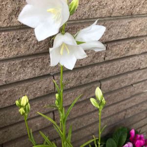白桔梗でしょうか? 山野草のお店で買った花の蜂の隅に一本だけ出ていた物がこんなに立派に咲きました ^_^
