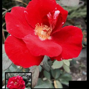 同じ薔薇なのに何故??? 全く違う咲き方に驚き(゚o゚; 両方とも絞りは前より少なめ 下が10日前 花びらは多弁 昨日咲いたのは一重咲き 前と違う事と言えば これは新枝から咲いたもの 不思議さと真紅の美しさに 魅入ってしまいました🌹