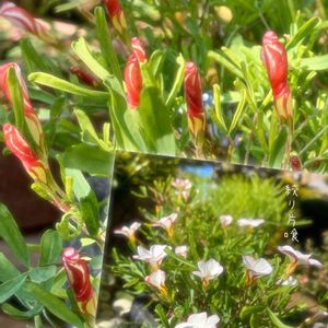 赤白の覆輪花弁の 絞り片喰は 蕾も花開いても 魅せてくれます♡