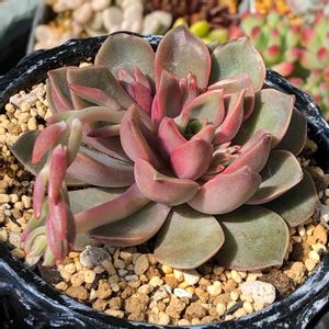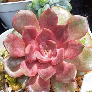 プレステラ105以下の子たちは、葉っぱがペラいわ、色は冴えないわ、この時期は底面吸水で水やりしてるんで埃っぽいわ、で撮影意欲が湧きませんが😂💦 葉色の違う子をコラージュして 「ド真ん中の日」🏷に参加します🎵 お好きなタイプの子いますか?🤭 ↖️エケベリア属 雪影 昨年9月にあけちゃんさんからもらって、この夏が我が家で初めての夏越し。がっしりしてきました♪ ↗️エケベリア属ホワイトライン この子もあけちゃん産の子で、一昨年4月に我が家に来て、今年が2回目の夏越し。上から撮ると見えませんけど、足元に子吹いてます♡ ⬅️グラプトペタルム属 スペルブム 2018年3月にオマケでもらった葉っぱを葉挿した子。ムッチリしてて好きなんですけど、全然上手く育ちません🤣なかなか真っ直ぐ育たないんで仕立て直しを繰り返してましたけど、枝垂れる品種らしいのでロゼット横向きのまま様子をみてます。 ➡️エケベリア属 軍旗 この子の親株は、2019年の5月にお迎えして4回目の夏越し。これは一昨年の秋に親株からカットしてビニポットに挿して育ててる子です。この子は夏越しは心配無用ですけど、お店であまり見かけないんで保険株です。 ↙️エケベリア属 ラウィバード 2018年4月にお迎えして5回目の夏越し。ラウィとブルーバードの交配種なんですけど、持ってる人少ないんじゃないですかね🤭親株の足元に生まれた子たちをしばらくそのまま育ててたんですけど「保険株を作っとかなきゃな」と思って、今年3月に分頭して3鉢になってます。 ↘️エケベリア属 ミナ 昨年4月にお迎えして2回目の夏越し。エケにしては生長が早くて丈夫だし、葉色が好きです。秋〜春はもっと濃いけど、夏場もこんな感じ。ここのところ、お天気がパッとしない日が多かったんで、真ん中の色が抜けてます。 「たっちんの○○○」タグをタップでこの子たちや親株の生長記録のみどりのまとめが簡単に見れます😊 。* ❤︎… 今日のひと言 …❤︎*。 あれもこれも保険株を作るとなると置き場所が2倍要ることになるんで「保険株は品種を厳選して」作るようにしたいですな👍
