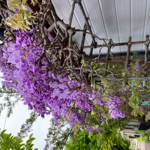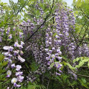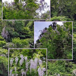 山々の藤の花が咲きだしました🌿💜:*(〃∇〃人)*: 山に咲いているので、なかなかスマホの📷️では限界がありますが( ・∇・) すごくキレイなんです⤴️✨ あちこちに咲いていて⤴️💕 見上げながら車💦運転注意ですね( ´~`)ゞ 最近は、杉の木が高く売れないこともあり、手入れをしていない山が多く・・藤が杉に絡まっていてもそのままで・・年々藤の花が見事になっているようです。(u_u*)なんとも、杉の木にとっては辛いですね。