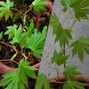 3 / 24 もみじ? かえで? 10cmほどの 小さな木 🌳緑が綺麗 🌿葉っぱが出て 開いたばかり 新緑