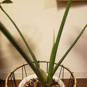 一方新入りのエレファントイアー君は、絶好調で早速新しい葉っぱを出してくれました。 お外でさんさん日光のお庭からうちに引っ越してきて、室内だから暗すぎるんじゃないかとか不安だったけれど、へっちゃらみたいです。 うちに連れてくると始めはガクッと元気なくなるのがよくあるので、強い子で一安心だわー。