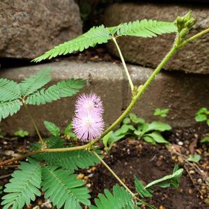 春におじぎ草を蒔くときに落とした種が成長しました。 プランターのより地植えの方がよく育ってます🍀 やっと時間をかけてお花が咲きました☺️🌸 ポンポンしててやっぱりかわいい💕