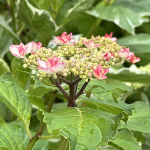 ヤマアジサイ 渥美のサンゴ姫 小学生のころ 庭の紫陽花を教室にもっていくと 先生が喜んで 花瓶にさしてくれたっけ… 本当に喜んでくれていたかは ちょっとよくわからないけど😅 教室に花があるだけで 黒板の字も輝いて見えるような かわいい小学生のころ🤣