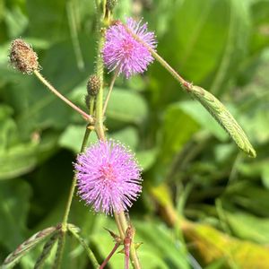 こぼれ種から、ここ数年、毎年、オジギソウが発芽します。 邪魔にならないところのオジギソウは、そのまま生やしてるので、今かわいい花が咲いてます。 ピンクのフサフサ。 マメ科らしいタネもたくさんついてます。 雑草扱いみたいになっていて、最近は子どもも、見慣れすぎて、遊んでない💦 たくさん生えたところは、抜いたりもしているけど、トゲがあるから要注意だね💦 タネまた、たくさんできてるから、そのままにしといたら、また来年も、多分発芽してくれるでしょう☺️