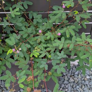 オジギソウを寄せ植えしたら他の花は枯れてしまいました。オジギソウって繁殖力凄いですね。