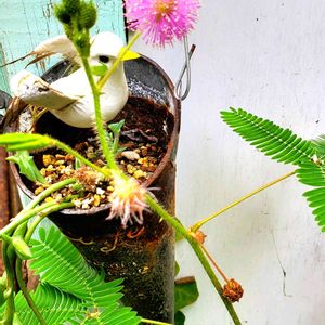 おじぎ草の花💠 植木鉢管理してるけど 地植えにしても 大丈夫かなあ➰🤔 Googleググって調べ🔍なきゃ➰