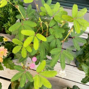 初めておじぎそうの花が咲きました🌸 小さくて丸くて淡いピンクのお花がとっても可愛いです❤︎(。☌︎ᴗ☌︎。)🩷💕💕