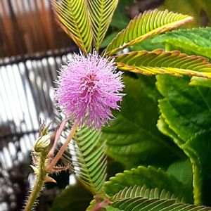一日花のオジギソウ 花も葉っぱも可愛い マメ科 オジギソウ属 たま~に咲いているのが楽しいです!