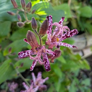 🏷今日のお花 🏷山野草マニア 8月にお迎えしたチャボホトトギスが開花しました🪴💖 背の低いタイプですが、可愛いです🤗 今日も良い日になります様に❣️❣️❣️