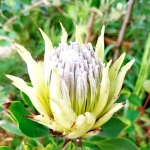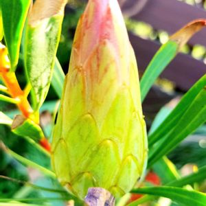 プロテアの花芽たち…成長記録です☆😆🔍 フロステッドもだいぶ色が出てきました!🟢🌸このまま順調にいけば、来月くらいには咲くかも♪😁 スパイキーは綺麗にはならなかったけど開き始めてきました☆咲く前に🐜の餌食にならないと良いけど😅 スペピンも順調に成長中♫ 綺麗な逆イチゴ型🍓になりましたね。 ジュリエット…地植えしてから初めての花芽です!3F☆😃まだちっこいから、咲いても冬までかかるかなぁ💦
