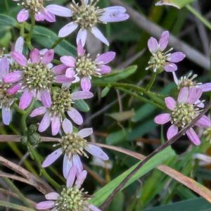 1⃣2⃣3⃣ サワシロギク(沢白菊)キク科シオン属 9月の初めに白いサワシロギグ咲いてましたが今はピンクになってるのが見られます。 30cmくらいの小さな子でした。 丈は50-60cm、葉は線状披針形で下部の葉には長柄があります。 中部の葉は線状披針形で7-10cm。いずれも厚みがあってやや固く、目立たない鋸歯があるか全縁。 頭花は花数は少なく、径25mm、総苞は半球形で総苞片は3列。 花が終わりに近づくと、赤みを帯びます。 4⃣5⃣ サワヒヨドリ(沢鵯)キク科ヒヨドリバナ属 ウメバチソウ、センブリと一緒に咲いてました。 草丈は30cmと小さめでした。 水田の畦や用水路脇、休耕田、溜池畔、湿地などに生育する多年草。 茎は直立し、高さ40~90cm、上部には縮れた毛を密生する。 葉は長さ6~12cm、幅1~2cmで先は細まり鈍頭、柄はなく、ときに3深裂し、両面に縮れた毛が多く、下面には腺点がある。 花序は密な散房花序。 総苞は長さ4~5mmで5小花からなる。 🏷 木曜日は桃色 🏷 木曜モフモフ