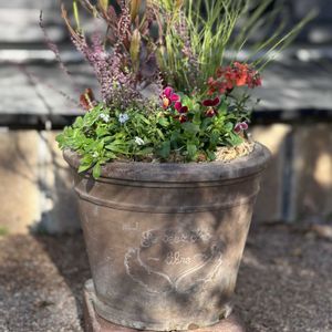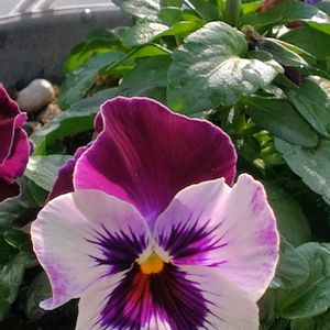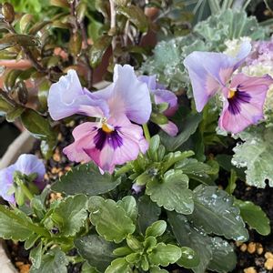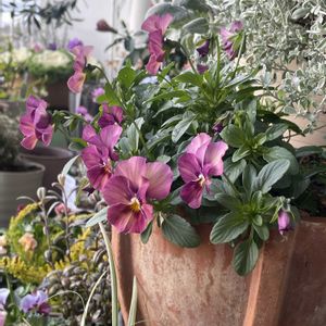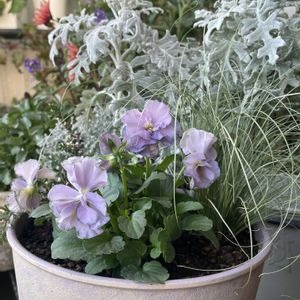 グレーがかったシックな色のビオラ💜 かわいく寄せ植えできました〜🥰