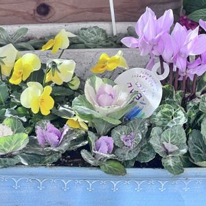 ハボタンとビオラとガーデンシクラメンの寄せ植え作りました。