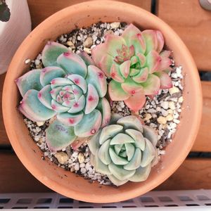 可愛くて朝から眺めて色々考えていました☺️ 多肉初心者なので可愛い寄せ植えを作ろうと思っていたけどこのまま単体で育てた方が育てやすいかな〜、、、 個々で育てつつ増やすことにも挑戦して増えたら寄せ植えしてみようかな〜、と🍀 皆さんの投稿を参考にさせて頂きながら楽しもうと思います💕 ちなみに、葉挿しというものは葉を取って多肉の土の上に転がしておけば良いだけなのですか? 色々調べていたのですが初めてで分からないことだらけで😥 土は乾いてるもので良いのか湿らせてある方が良いのか、屋外に置いておく方が良いのか室内に入れておくのか、など、アドバイス頂ければ嬉しいです🙏 よろしくお願いします☺️